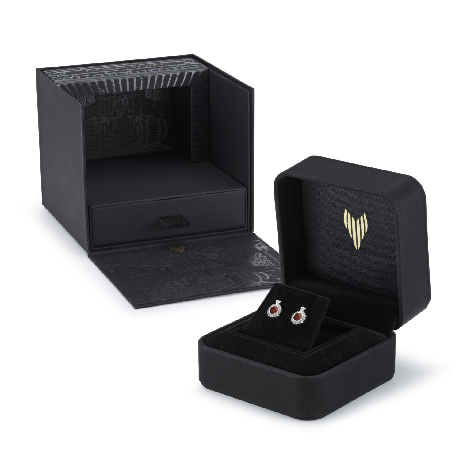 The distinctiveness of Vincells jewelry lies in the solid stones crafted from actual wine, a concept unique in the world. Each stone is unique, capturing the solid fingerprint of the wine, thus bestowing the jewelry with an inimitable characteristic much like the diamonds themselves.