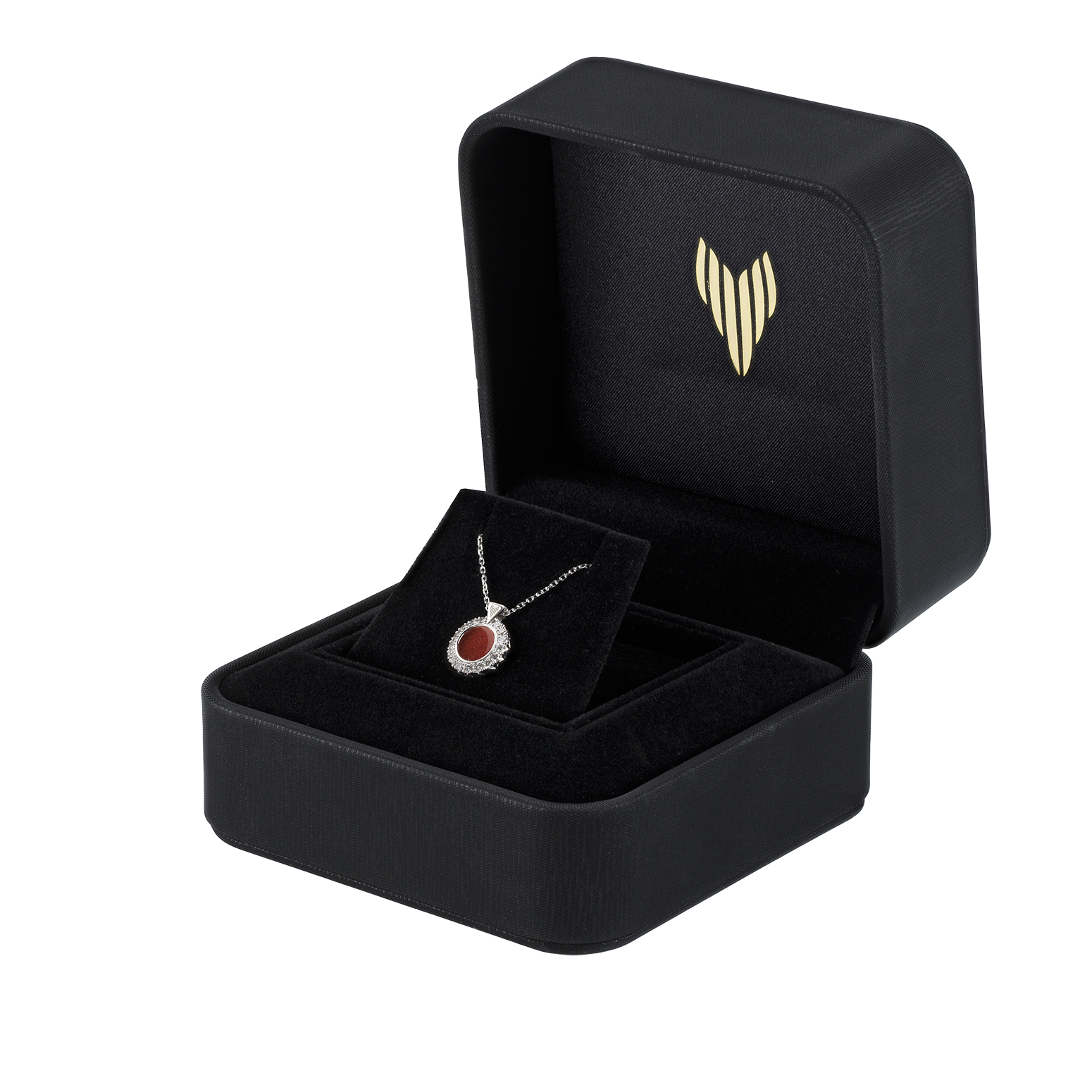 VINCELLS MIRABILITAS FAMILIA pendant in white gold with red wine stone
