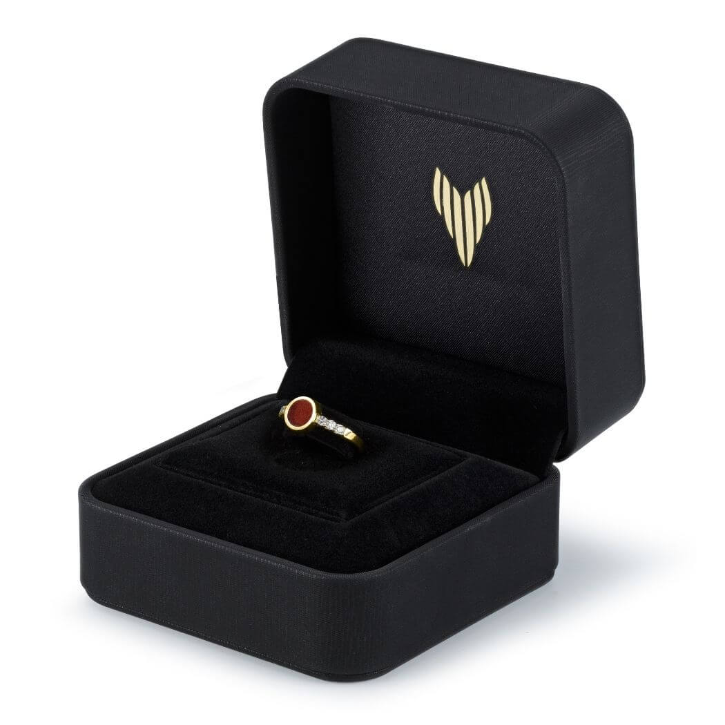 VINCELLS MIRABILITAS AMARE ring in yellow gold with red wine stone