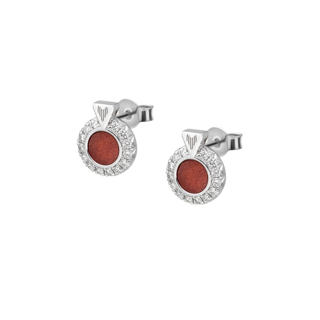 • Exact description: White gold diamond circle earrings with red wine stone